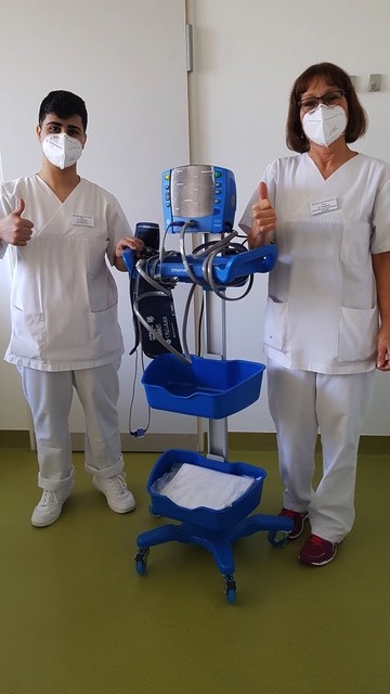 „Wir frieren häufig,“ so eine Mitarbeiterin des Kehler Klinikums. Mit den nun angeschafften Fleece-Jacken wurde Abhilfe geschaffen. Gleichzeitig wurde durch das Einrichten eines Lagers von Jacken gewährleistet, dass jedem Beschäftigten jederzeit eine Jacke zur Verfügung steht. Gewaschen werden die Jacken durch die Zentralwäscherei des Ortenau Klinikums. Mit Herz und EKG, dem Logo des Kehler Fördervereins sind die Jacken auch optisch sofort erkennbar. Wolfram Britz, der Vorsitzende des Fördervereins betont, dass alle aktuellen Projekte vom Förderverein komplett finanziert werden.